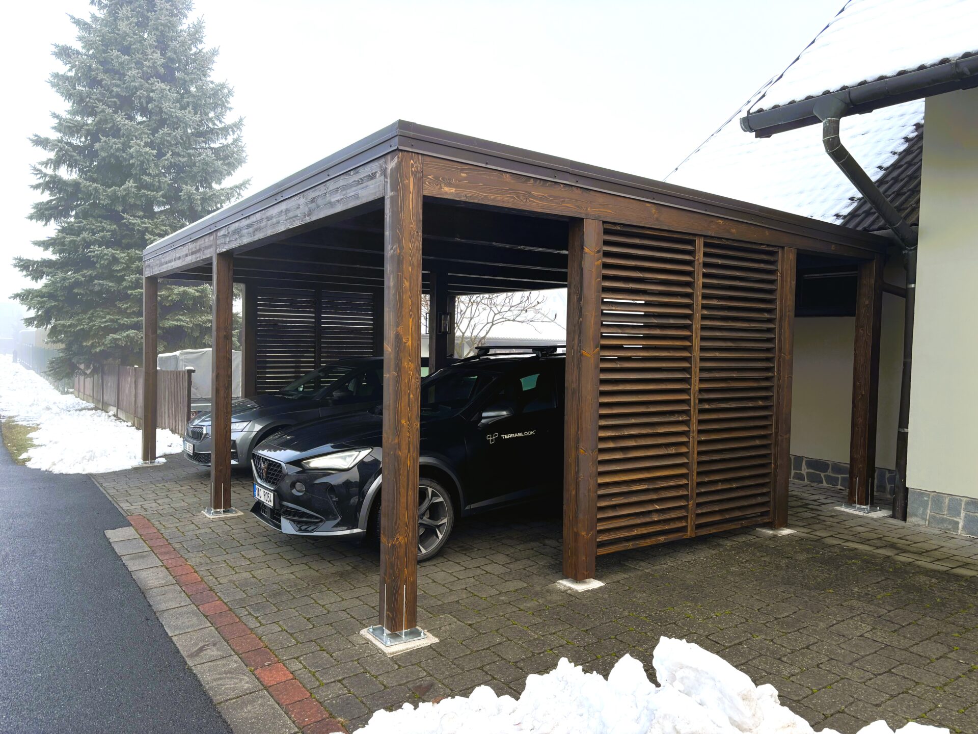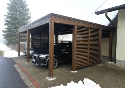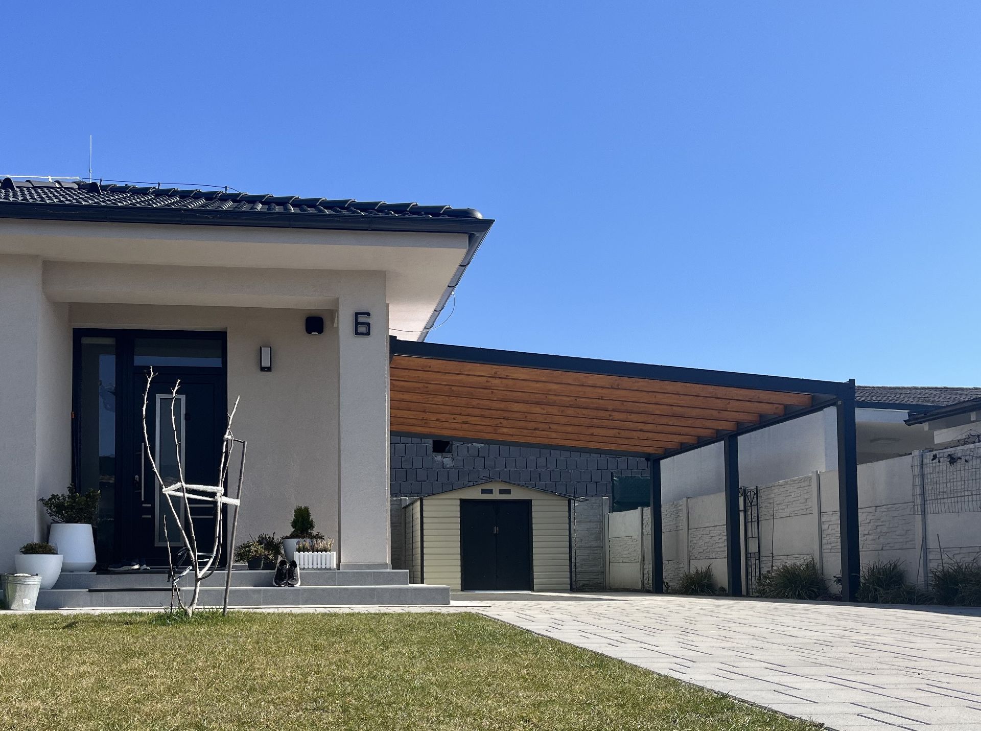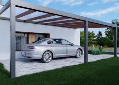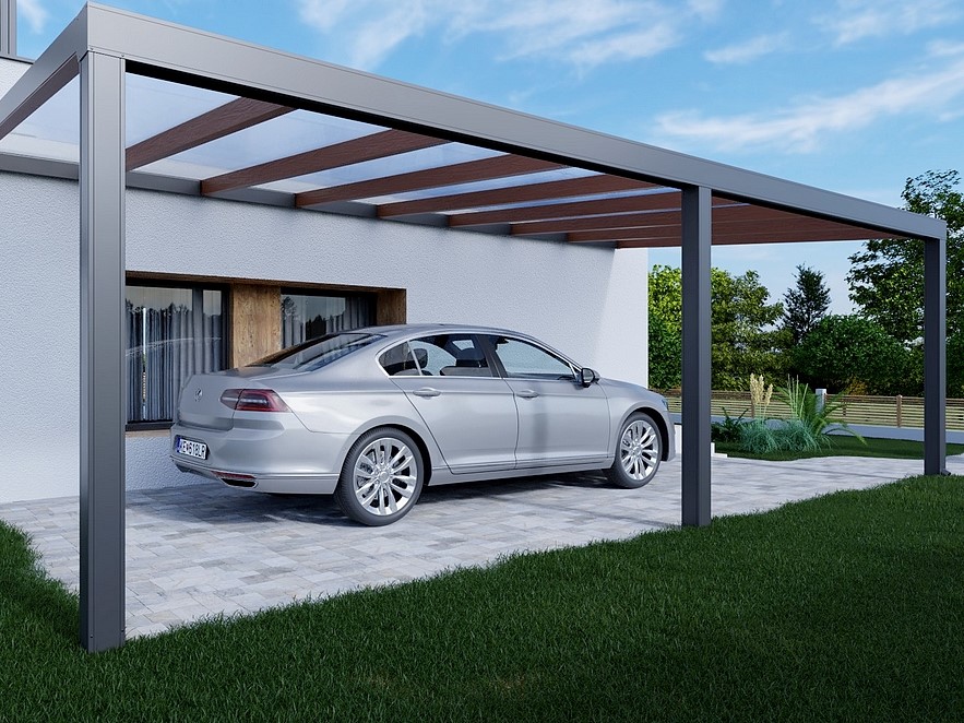 Ďalší moderný a vysoko funkčný prvok z našej ponuky je takzvaný „carport“. Vaše auto dostatočne ochráni nielen pred prudkým letným slnkom, ale aj pred dažďom, snehom alebo krúpami. V rôznych variantoch prevedenia z hliníku, dreva alebo v kombinácii oboch materiálov je možné vytvoriť aj dizajnovo a konštrukčne náročnejšie predstavy. Prevažne sa v tomto prípade jedná o väčšiu stavbu, preto je potrebné pevné osadenie celej konštrukcie k podkladu, ako aj správne ukotvenie k existujúcej stavbe.